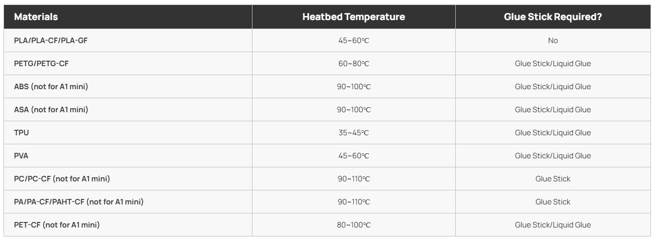 PEI permite imprimir no sólo con materiales comunes como PLA, TPU, PETG, sino también con materiales que requieren altas temperaturas como ABS y Nylon.
