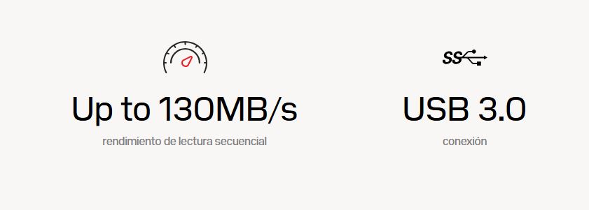 Disfruta de velocidades de lectura de hasta 130 MB/s para mover archivos grandes rápidamente y sin esperas.