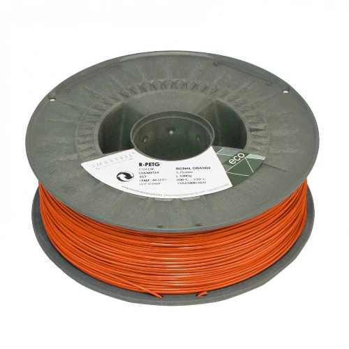 El filamento R-PETG Signal Orange Smartfil es un material de impresión 3D fabricado a partir de PETG reciclado, diseñado para ofrecer alta resistencia mecánica y durabilidad con un acabado en color naranja señal de gran visibilidad. Mantiene las propiedades técnicas del PETG, como excelente adhesión entre capas y mayor resistencia frente a impactos en comparación con el PLA.
