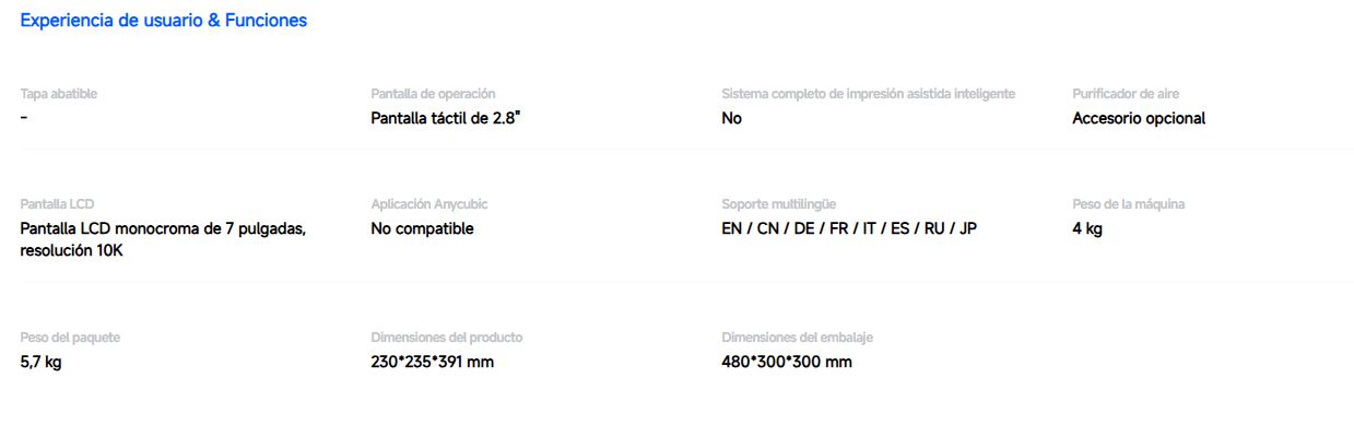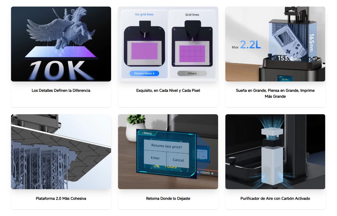 La Anycubic Photon Mono 4 es una impresora 3D de resina de alto rendimiento que combina precisión, velocidad y facilidad de uso en un formato compacto. Diseñada para quienes buscan resultados detallados en piezas pequeñas y medianas, ofrece un nivel de definición óptimo gracias a su pantalla LCD monocromática de nueva generación. Esta tecnología permite tiempos de exposición reducidos, mayor durabilidad del panel y una reproducción más fina de los detalles. Además, su estructura sólida y su interfaz intuitiva la hacen ideal tanto para principiantes como para usuarios avanzados que trabajan con modelos complejos y detallados.