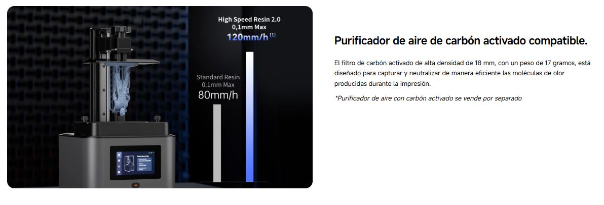 Velocidad de impresión: hasta 120 mm/h (resina alta velocidad)