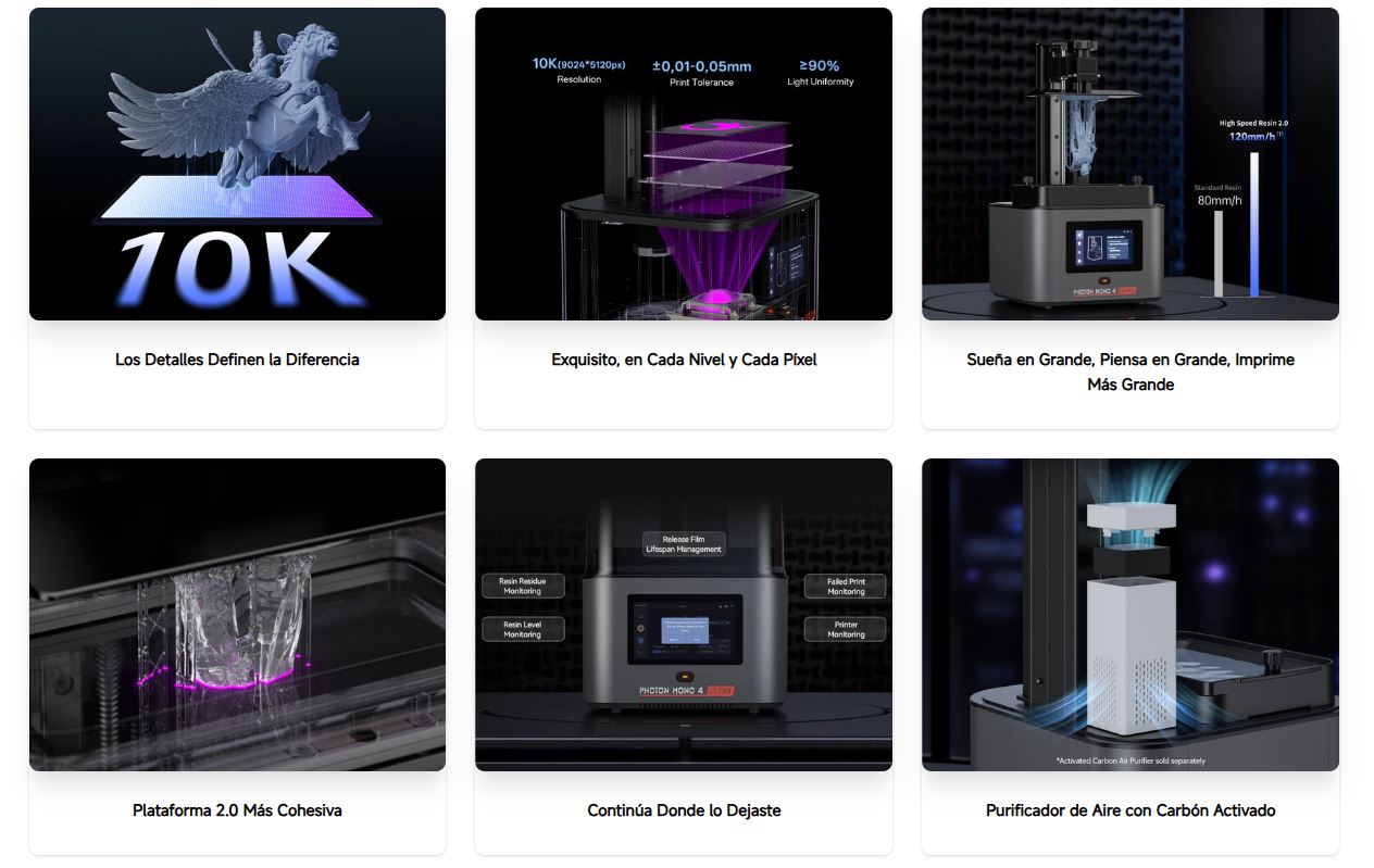 La Anycubic Photon Mono 4 Ultra es una impresora 3D de resina diseñada para ofrecer máxima precisión, alta velocidad y facilidad de uso, convirtiéndose en una solución ideal tanto para prototipado técnico como para producción de piezas con alto nivel de detalle.