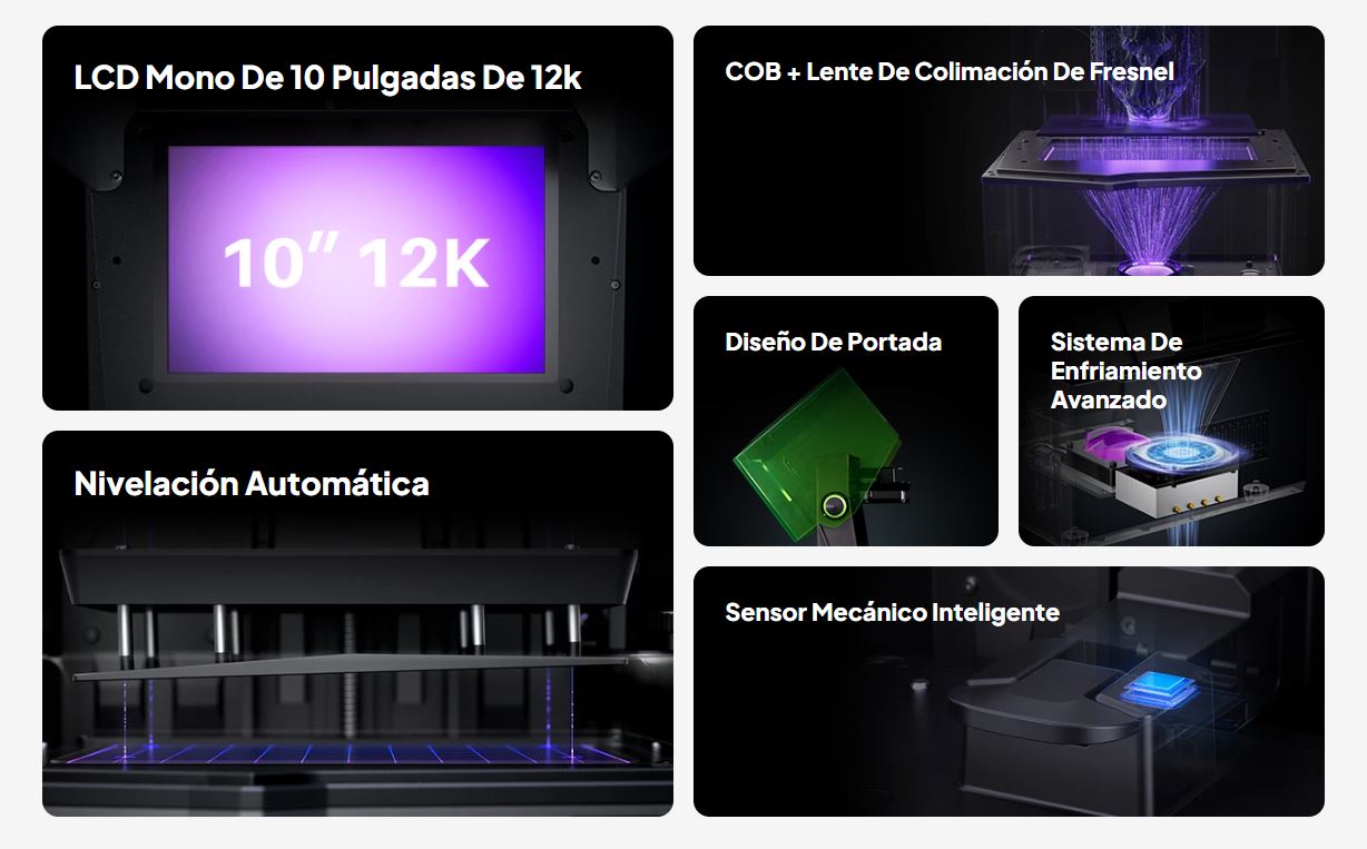 La Elegoo Saturn 4 es una impresora 3D de resina enfocada en ofrecer una alta calidad de detalle, una mayor estabilidad de impresión y un funcionamiento muy intuitivo. Gracias a su pantalla monocromática de alta resolución y a su sistema de movimiento preciso, esta impresora permite obtener piezas con acabados finos, bordes nítidos y una reproducción fiel de geometrías complejas. Además, su volumen de impresión es suficientemente amplio como para producir modelos medianos o múltiples piezas a la vez, lo que la convierte en una opción equilibrada tanto para uso profesional como para aficionados avanzados.