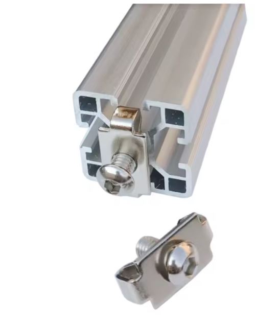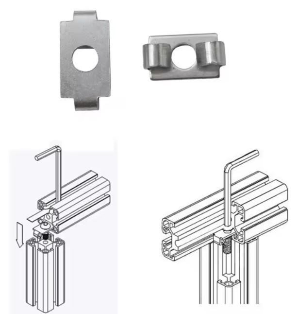 Su diseño con pestañas de presión permite que la tuerca quede fija dentro del canal del perfil. Al introducir el tornillo y apretar, el conjunto queda bloqueado de forma segura sin necesidad de desmontar la estructura.