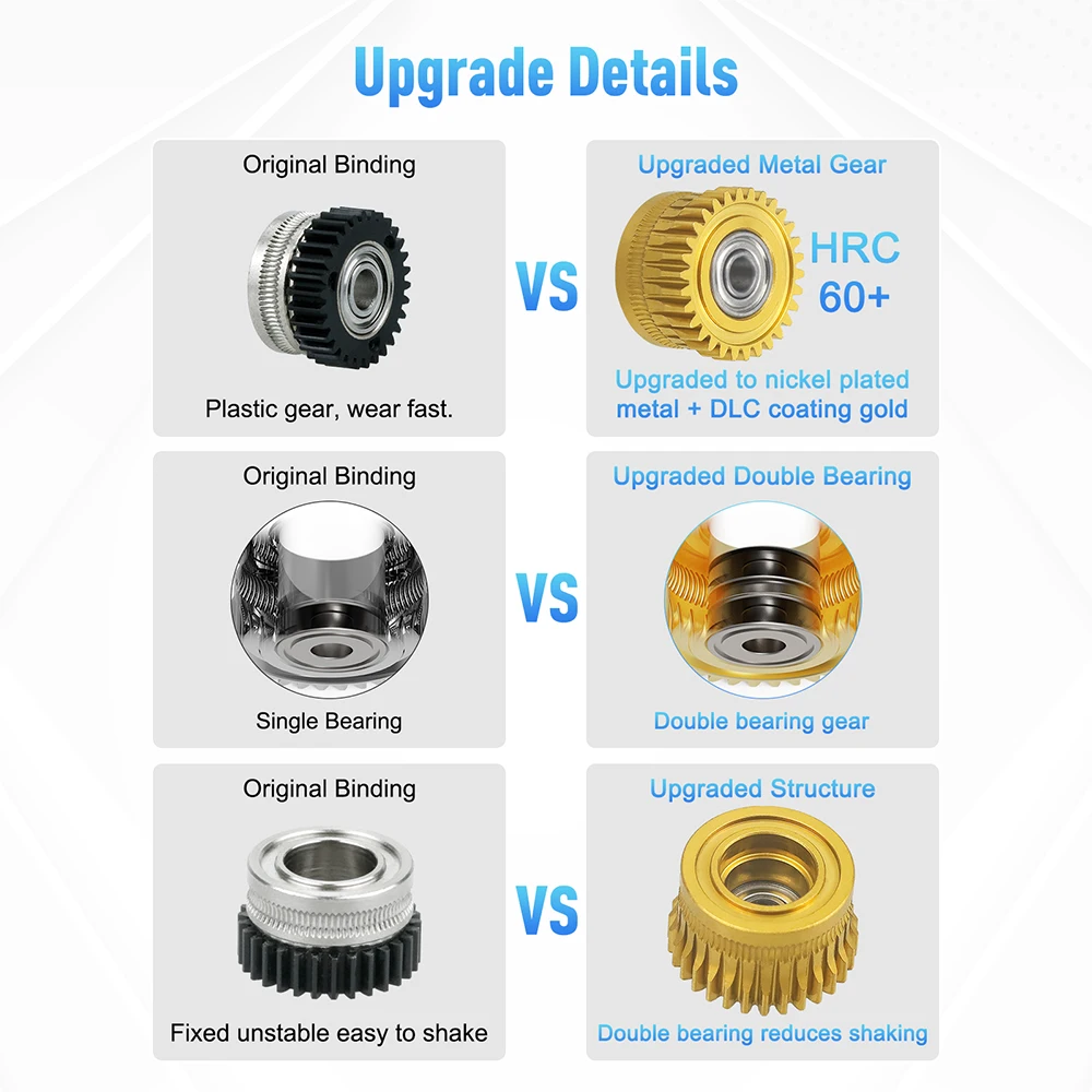 Kit de Engranajes de Extrusora Mejorado – Doble Rodamiento DLC – Creality