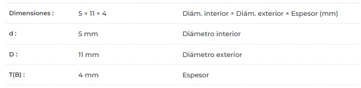 Medidas: 5x11x4 mm (diámetro interior x exterior x ancho)